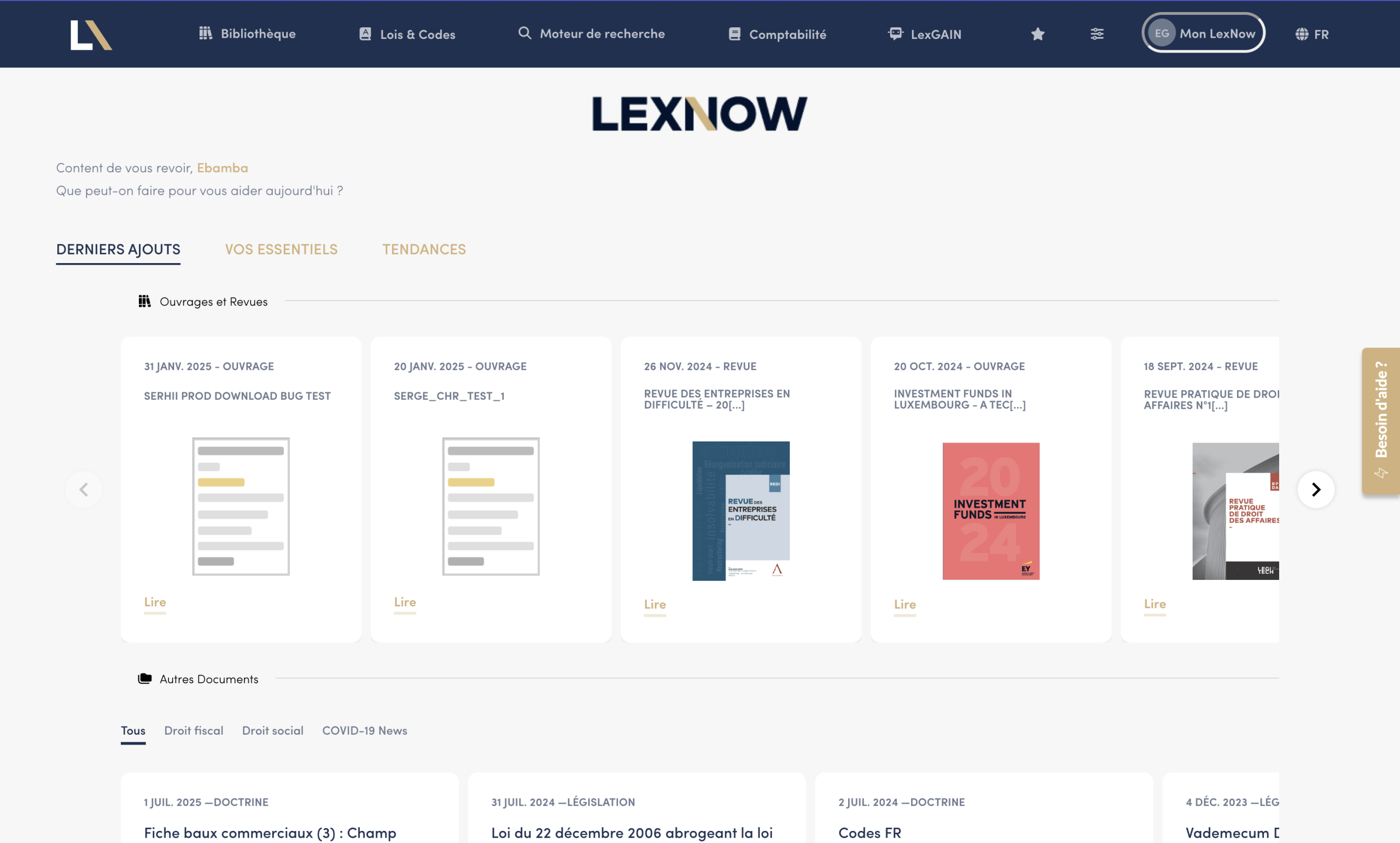 Je développe des fonctionnalités front-end et back-end pour Lexnow, l’une des plus grandes bibliothèques juridiques au Luxembourg et en Belgique.